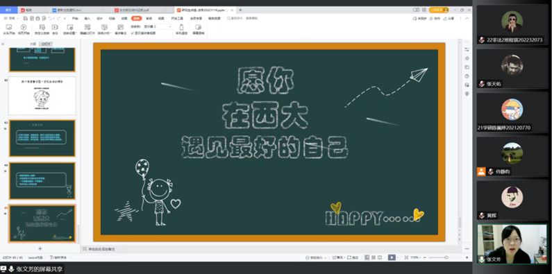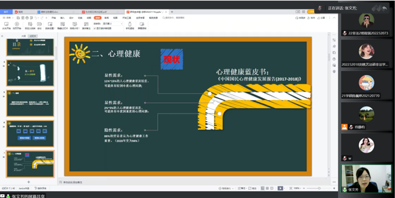 20221116日下午15时,我院顺利开展研究生学术活动月——“研究生压力管理与心理健康主题讲座,本次讲座特邀我校心理健康中心副主任张文芳老师主讲,242net必赢200余名学生以腾讯会议的形式线上参加。